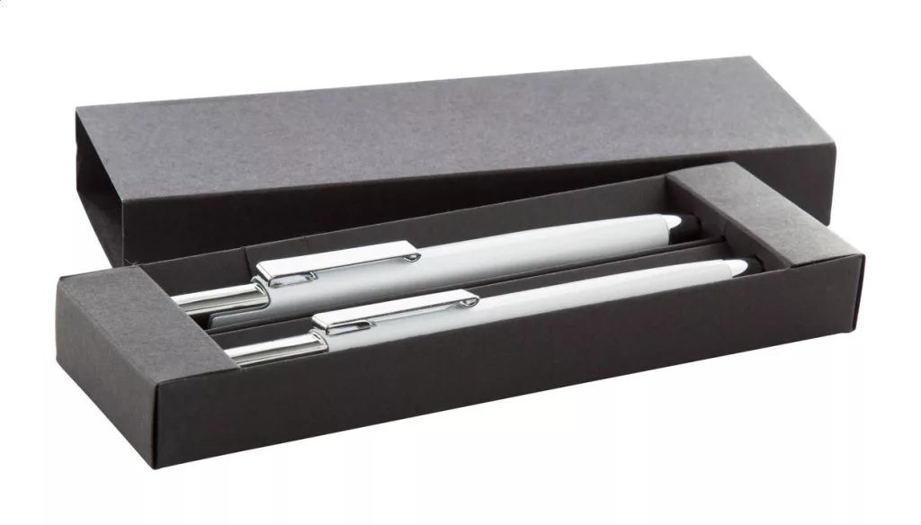 Alumínium toll szett, golyóstollal és töltőceruzával fekete dobozban. Kék tollbetéttel és 0,7 mm-es töltőheggyel szállítjuk.
