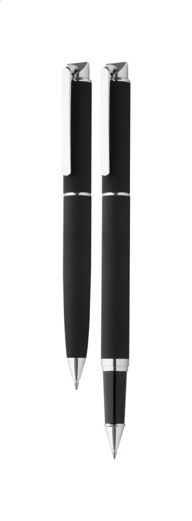 2 darabos toll szett fekete, mágneszáras karton dobozban. A szett egy-egy fémből készült, gumírozott roller és golyóstollat tartalmaz. Fekete tollbetéttel szállítjuk.