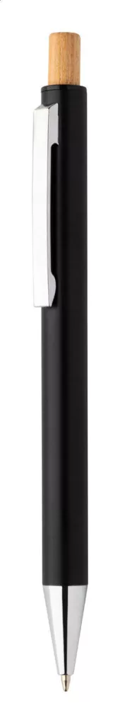 Újrahasznosított alumínium tollszett golyóstollal és töltőceruzával, bambusz gombokkal. Kék tollbetéttel és 0,7 mm-es heggyel. Kraft papír dobozban.