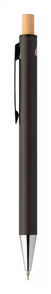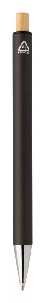 Újrahasznosított alumínium tollszett golyóstollal és töltőceruzával, bambusz gombokkal. Kék tollbetéttel és 0,7 mm-es heggyel. Kraft papír dobozban.