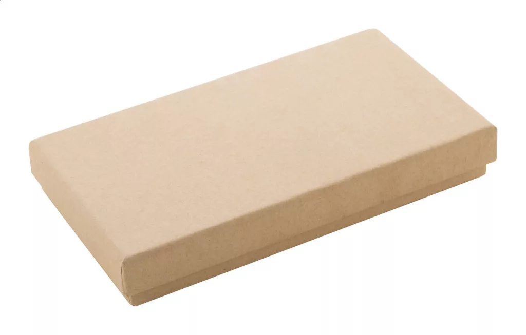 2 db-os ajándék szett kraft papír díszdobozban. Tartalmaz egy újrahasznosított alumínium golyóstollat kék tollbetéttel, ​​bambusz gombbal és gyűrűvel, gumírozott felülettel és speciális bevonattal a tükörgravírozáshoz; és egy bambuszból és újrahasznosított rozsdamentes acélból készült kulcstartót gumírozott felülettel és tükörbevonattal.