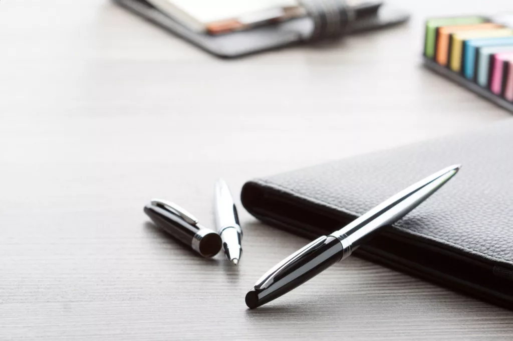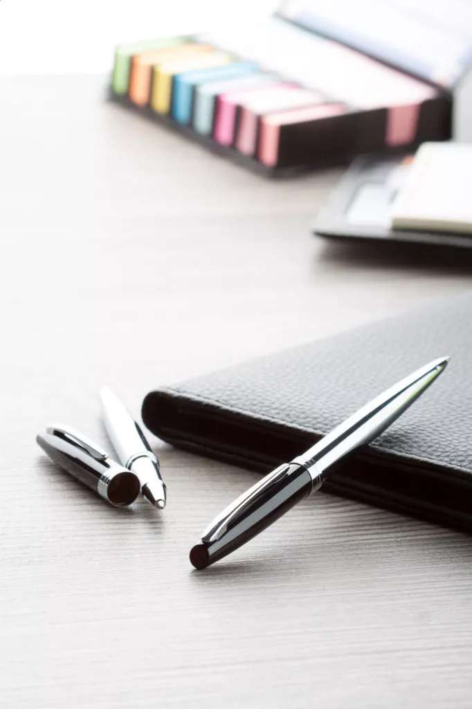 Fém roller és golyóstoll fekete díszítéssel, króm kiegészítőkkel, fekete karton díszdobozban. Kék tollbetéttel szállítjuk.