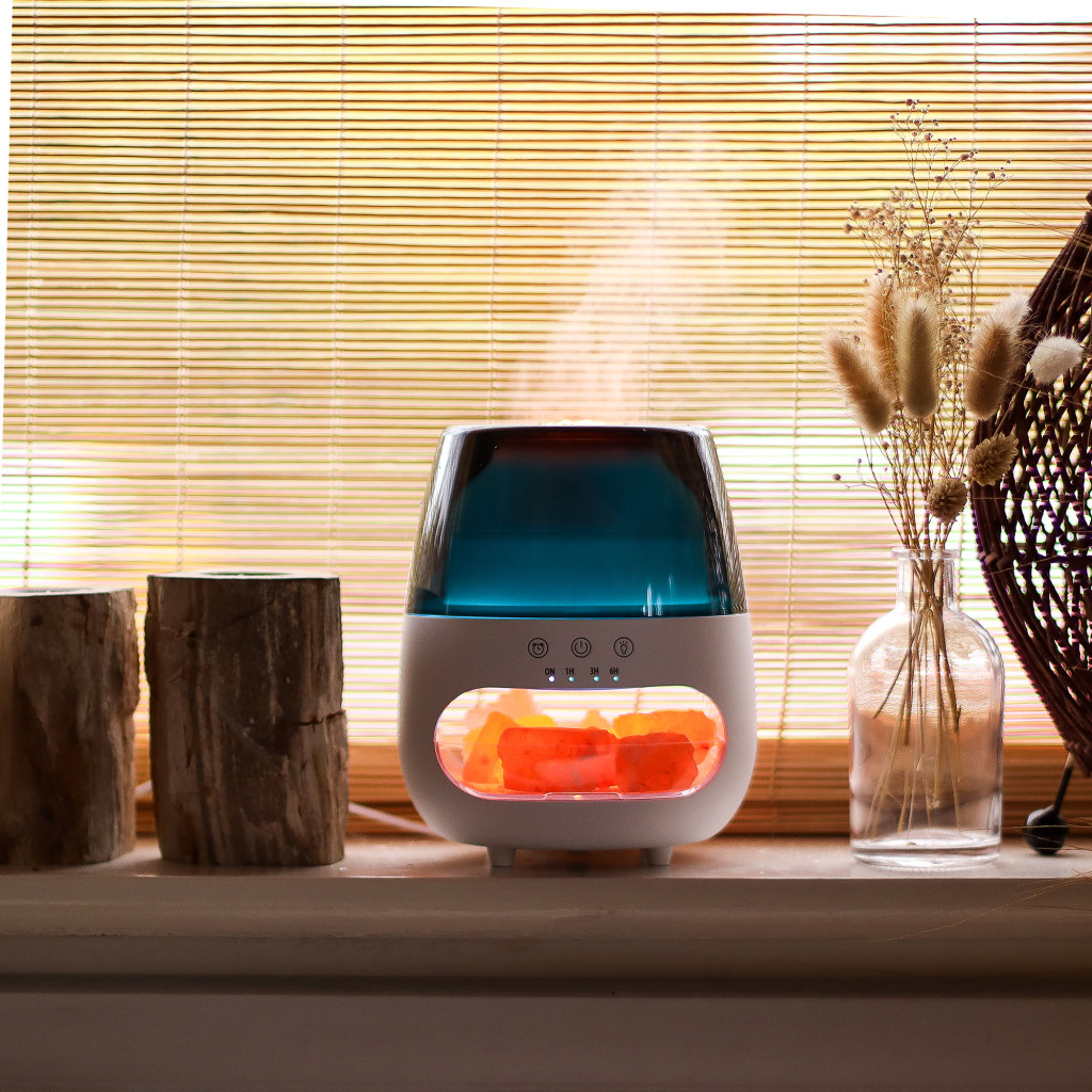 Használati tipp: Töltse fel a tartályt tisztított vízzel, adjon hozzá néhány csepp kedvenc illóolaját, állítsa be az időzítőt és engedje, hogy a himalája só és az aromák varázsa átjárja otthonát. Este levendulát, napközben citromot vagy eukaliptuszt használjon.