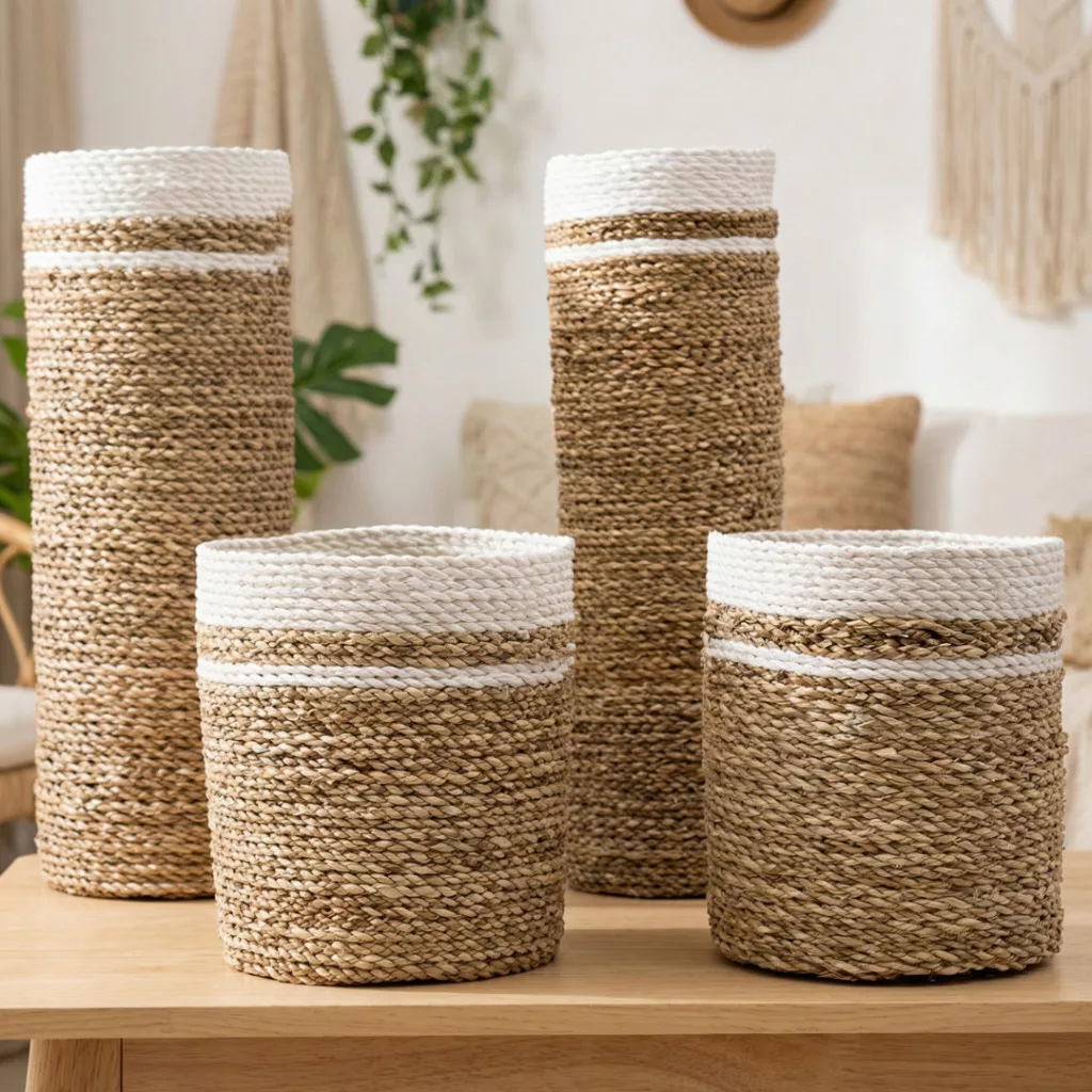 Tiszta természet otthonodban – ÖKO-barát alapanyagokból: természetes banánlevelek, tengerifű és rafia. Vegyszermentes, fenntartható, és gyönyörű textúrájú.